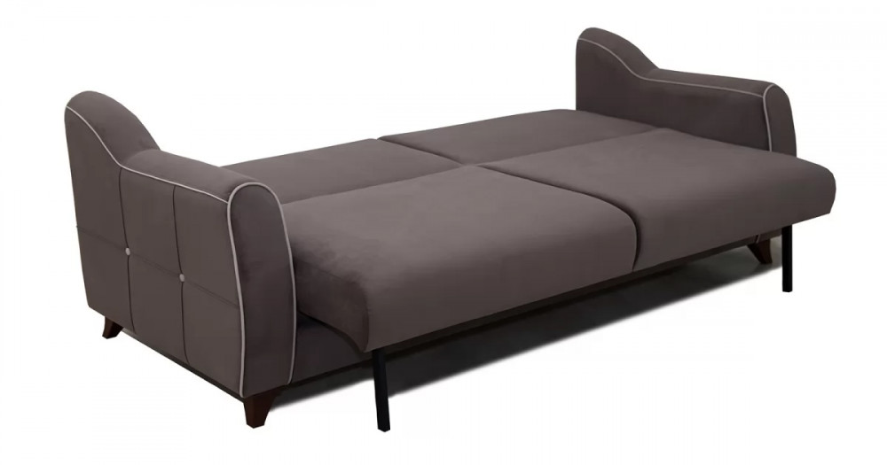 Френсис Диван-кровать арт. ТД 261Габаритысложенный (Д x Г х В, мм): 2280 x 1030 x 900спальное место (Д x Ш, мм): 1950 x 1310высота посадки (мм): 480глубина сиденья (мм): 570максимально допустимая нагрузка: 80 кг на одно посадочное место, 100 кг на одно спальное местоМеханизм трансформацииКнижка с 0 стенойБельевой ящикестьс перегородкой по центру (2 отделения)размер отделения (Д x Ш, мм):  890 x 840 x 200Варианты исполнения5 артикуловсочетание тканей только как на фотоМатериалыосновная ткань: Амиго (велюр)выполняется в тканях: Амиго шоколад (коричневый), Амиго крем (серо-бежевый)каркас: фанера