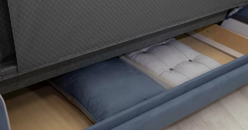 Френсис Диван-кровать арт. ТД 263Габаритысложенный (Д x Г х В, мм): 2280 x 1030 x 900спальное место (Д x Ш, мм): 1950 x 1310высота посадки (мм): 480глубина сиденья (мм): 570максимально допустимая нагрузка: 80 кг на одно посадочное место, 100 кг на одно спальное местоМеханизм трансформацииКнижка с 0 стенойБельевой ящикестьс перегородкой по центру (2 отделения)размер отделения (Д x Ш, мм): 890 x 840 x 200Варианты исполнения5 артикуловсочетание тканей только как на фотоМатериалыосновная ткань: Амиго (велюр)выполняется в тканях: Амиго нэви (серо-синий), Амиго эш (светло-серый)каркас: фанера деревянный брус ДСП ДВП ЛДСП ДВПооснование матраса: ППУ на блоке плоских пружин «змейка», периотекприспинные подушки, шт: 3декоративные подушки, шт: 2наполнитель подушек: полиэфирное волокно «шарики»материал опор: пластикцвет опор: коричневыйДекордекоративный кант, пуговицы, отстрочка, утяжки на подушках и подлокотникахНазначениев гостиную в гостевую комнатуТребуется ли сборкадаУпаковкаколичество коробок, шт: 2общий вес с упаковкой, кг: 88Гарантия: 18 месяцев