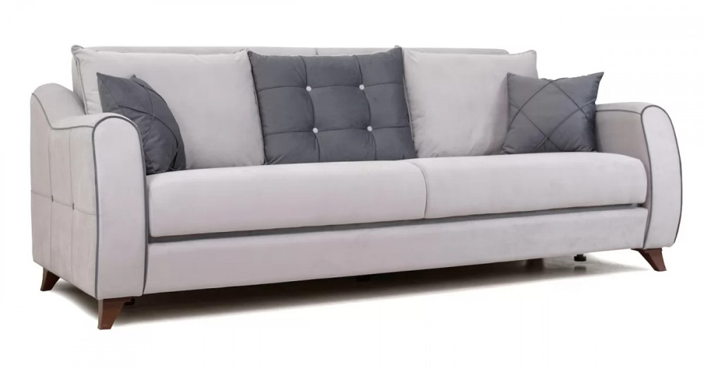 Френсис Диван-кровать арт. ТД 264Габаритысложенный (Д x Г х В, мм): 2280 x 1030 x 900спальное место (Д x Ш, мм): 1950 x 1310высота посадки (мм): 480глубина сиденья (мм): 570максимально допустимая нагрузка: 80 кг на одно посадочное место, 100 кг на одно спальное местоМеханизм трансформацииКнижка с 0 стенойБельевой ящикестьс перегородкой по центру (2 отделения)размер отделения (Д x Ш, мм): 890 x 840 x 200Варианты исполнения5 артикуловсочетание тканей только как на фотоМатериалыосновная ткань: Амиго (велюр)выполняется в тканях: Амиго эш (светло-серый), Амиго графит (темно-серый)каркас: фанера деревянный брус ДСП ДВП ЛДСП ДВПооснование матраса: ППУ на блоке плоских пружин «змейка», периотекприспинные подушки, шт: 3декоративные подушки, шт: 2наполнитель подушек: полиэфирное волокно «шарики»материал опор: пластикцвет опор: коричневыйДекордекоративный кант, пуговицы, отстрочка, утяжки на подушках и подлокотникахНазначениев гостиную в гостевую комнатуТребуется ли сборкадаУпаковкаколичество коробок, шт: 2общий вес с упаковкой, кг: 88Гарантия: 18 месяцев