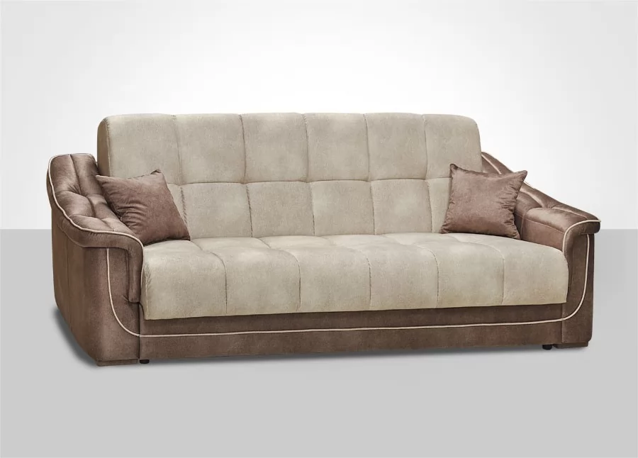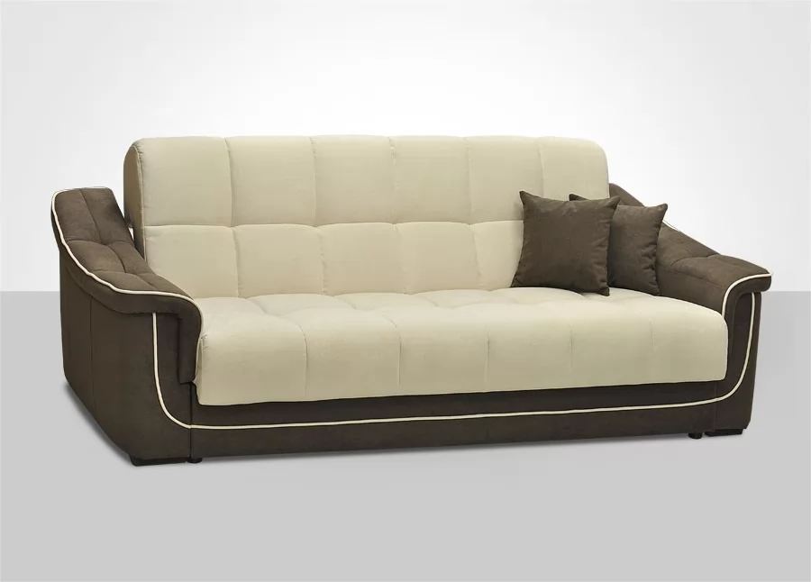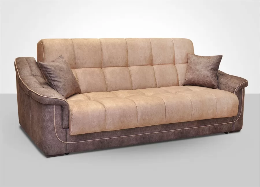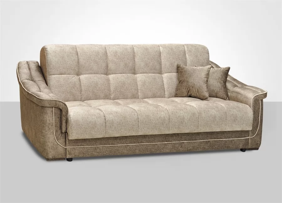Диван-кровать "Кристалл". Два ортопедических матраса встроенных в диван. Наружный чехол сшит по спец.технологии. Механизм трансформации не требует каких либо усилий для раскладки дивана. Большой ламинированный короб для белья. Широкие, мягкие подлокотники с утяжкой.