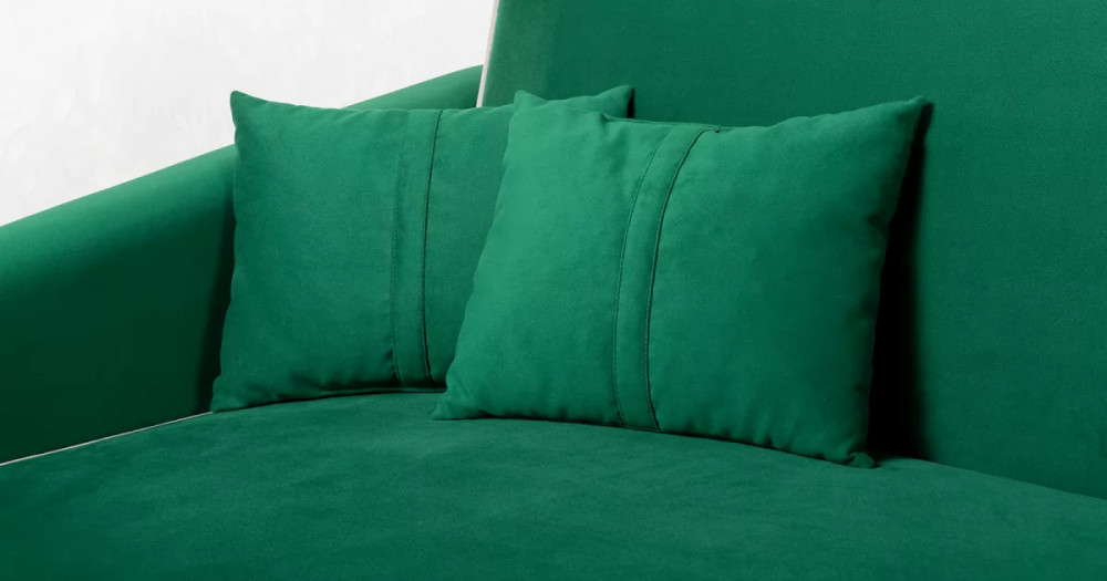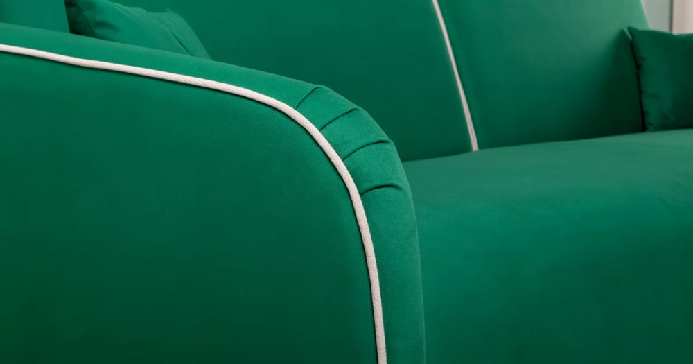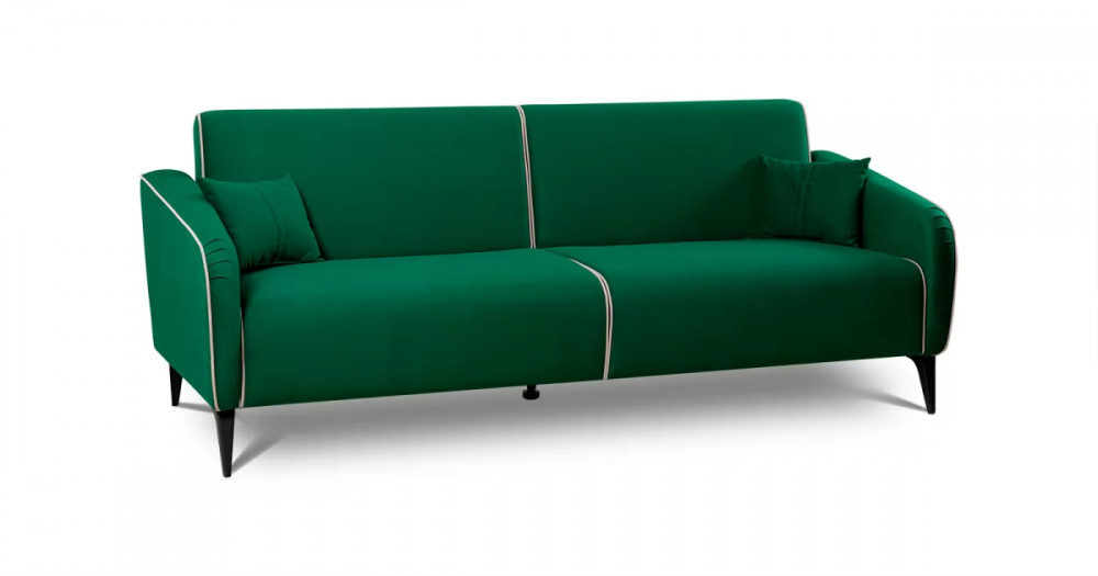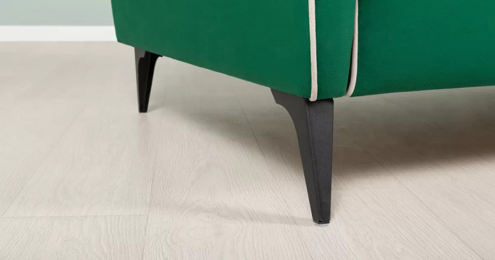 ДВПдекоративные подушки, шт: -2наполнитель подушек: -крошка ППУ и полиэфирное волокно «шарики»материал опор: металлцвет опор: черныйвысота опор (мм): 165ДекорСпинка и сиденье разделяются пополам двойным кантом по центру и одинарным по краям сидения, для придания одной единой формы. Подлокотники с изгибом на лицевой стороне и мягкими закругленным углом со складками, с выраженным контрастным ровным кантом по внешнему контуру изделия и изогнутой линией канта.Назначениев гостиную