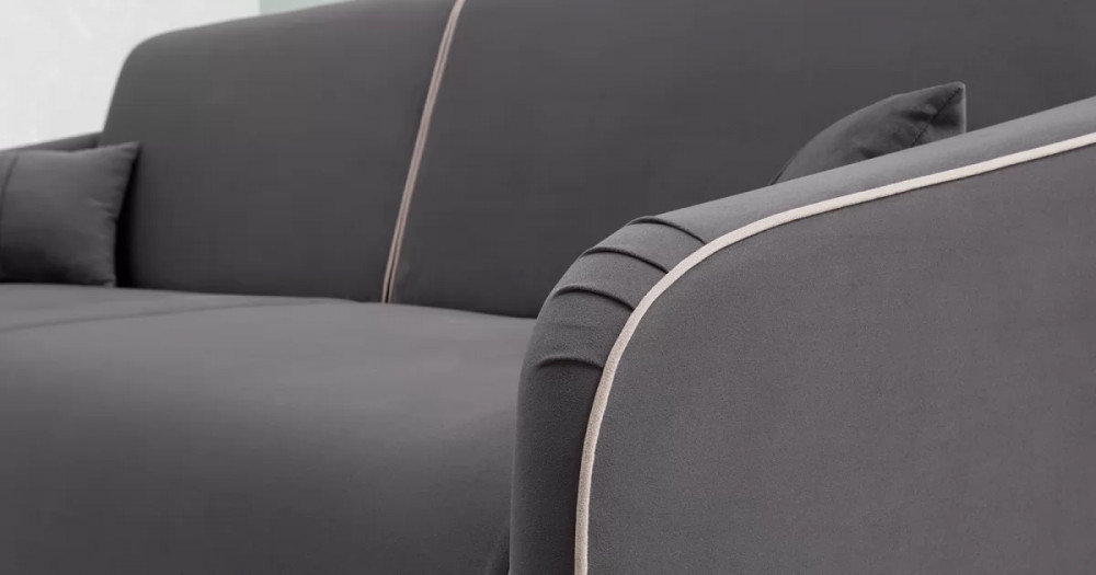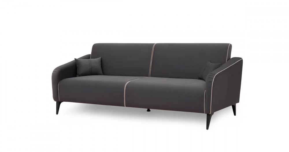 Габаритысложенный (Д x Г х В, мм): -2210 x 910 x 860разложенный (Д x Г х В, мм): -2210 x 1130 x 690спальное место (Д x Ш, мм): -1920 x 1130высота посадки (мм): -460глубина сиденья (мм): -590высота спинки (мм): -450высота подлокотника от сиденья (мм): -150-220максимально допустимая нагрузка: -80 кг на 1 посадочное местоМеханизм трансформации-КнижкаБельевой ящик-есть с перегородкой по центру (2 отделения)размер отделения (Д x Ш, мм): 740 x 885 x 885Варианты исполнения-5 артикуловсочетание тканей только как на фотоМатериалыосновная ткань: -Velutto (велюр)выполняется в тканях: Velutto 19 (темно-серый)/Velutto 08 (светлый кварцевый серый)каркас: фанера деревянный брус ДСП ДВПдекоративные подушки, шт: -2наполнитель подушек: -крошка ППУ и полиэфирное волокно «шарики»материал опор: металлцвет опор: черныйвысота опор (мм): 165ДекорСпинка и сиденье разделяются пополам двойным кантом по центру и одинарным по краям сидения, для придания одной единой формы. Подлокотники с изгибом на лицевой стороне и мягкими закругленным углом со складками, с выраженным контрастным ровным кантом по внешнему контуру изделия и изогнутой линией канта.Назначениев гостиную в молодежную в гостевую комнату в кабинет в офисТребуется ли сборка-даУпаковкаколичество коробок, шт: 2общий вес с упаковкой, кг: 58,1
