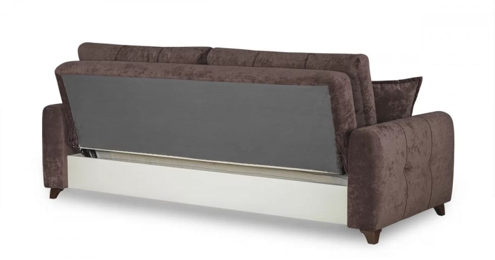 Материалыосновная ткань: Романс (велюр) / Марвел (кож.зам)выполняется в тканях: Романс ява (тёмно-фиолетовый), Марвел шоколад (шоколадный)каркас: фанера деревянный брус ДСП ЛДСП ДВПооснование матраса: ППУ на блоке плоских пружин "змейка"приспинные подушки, шт: 2съемные чехлы приспинных подушек: естьдекоративные подушки, шт: 2наполнитель подушек: крошка поролона и полиэфирное волокноматериал опор: пластикцвет опор: коричневыйвысота опор (мм): 80Бельевой ящикестьс перегородкой по центру (2 отделения)размер отделения (Д x Ш, мм): 890 x 840 x 200Требуется ли сборкадаУпаковкаколичество коробок, шт: 2общий вес с упаковкой, кг: 82,4Гарантия: 18 месяцевГабаритысложенный (Д x Г х В, мм): 2340 x 1050 x 910разложенный (Д x Г х В, мм): 2340 x 1310 x 600спальное место (Д x Ш, мм): 1950 x 1310высота посадки (мм): 470глубина сиденья (мм): 500высота спинки (мм): 540высота подлокотника от сиденья (мм): 180максимально допустимая нагрузка: 80 кг на одно посадочное место, 100 кг на одно спальное местоМеханизм трансформацииКнижка с 0 стенойБельевой ящикестьс перегородкой по центру (2 отделения)размер отделения (Д x Ш, мм): 890 x 840 x 200Декорзащипы на подушках и подлокотниках с утяжкой на 2 пуговицы из осн. материала, защипы на сидушке, декоративный кант на передних торцах подлокотников