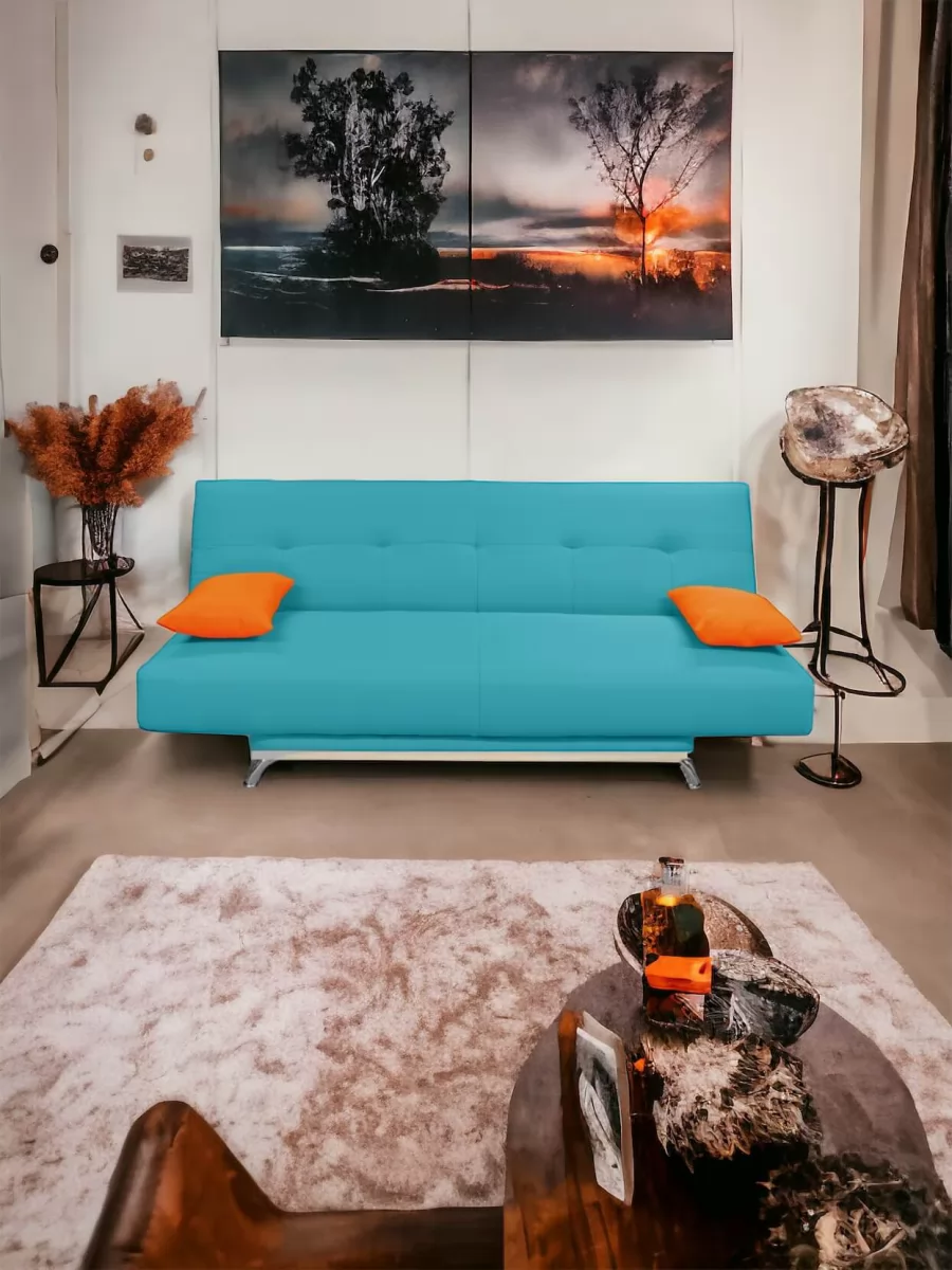 Прямой диван манго 2 Нео Азуре/Подушки Нео Оранж в Советском