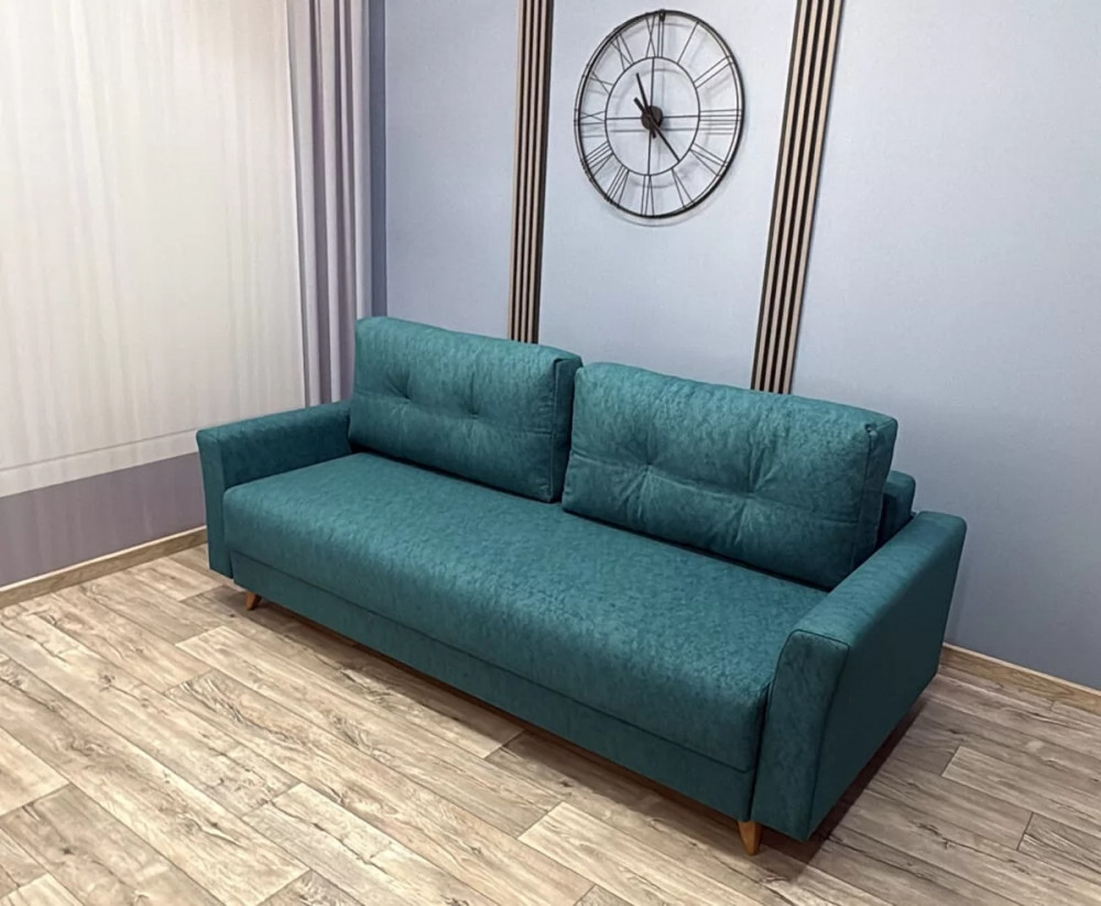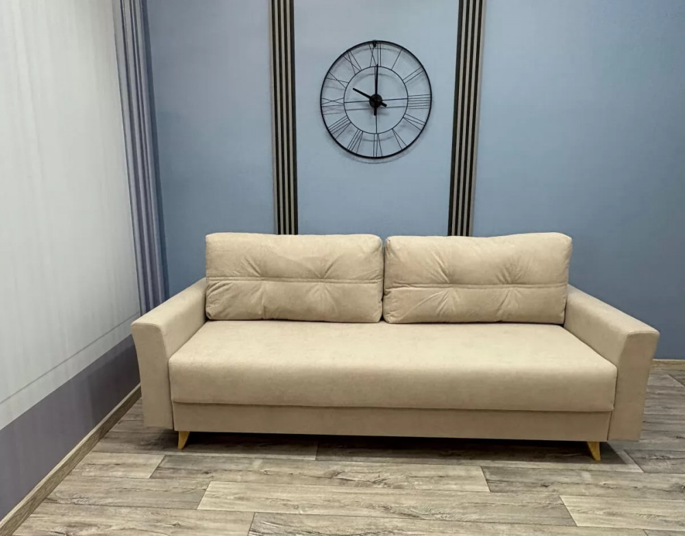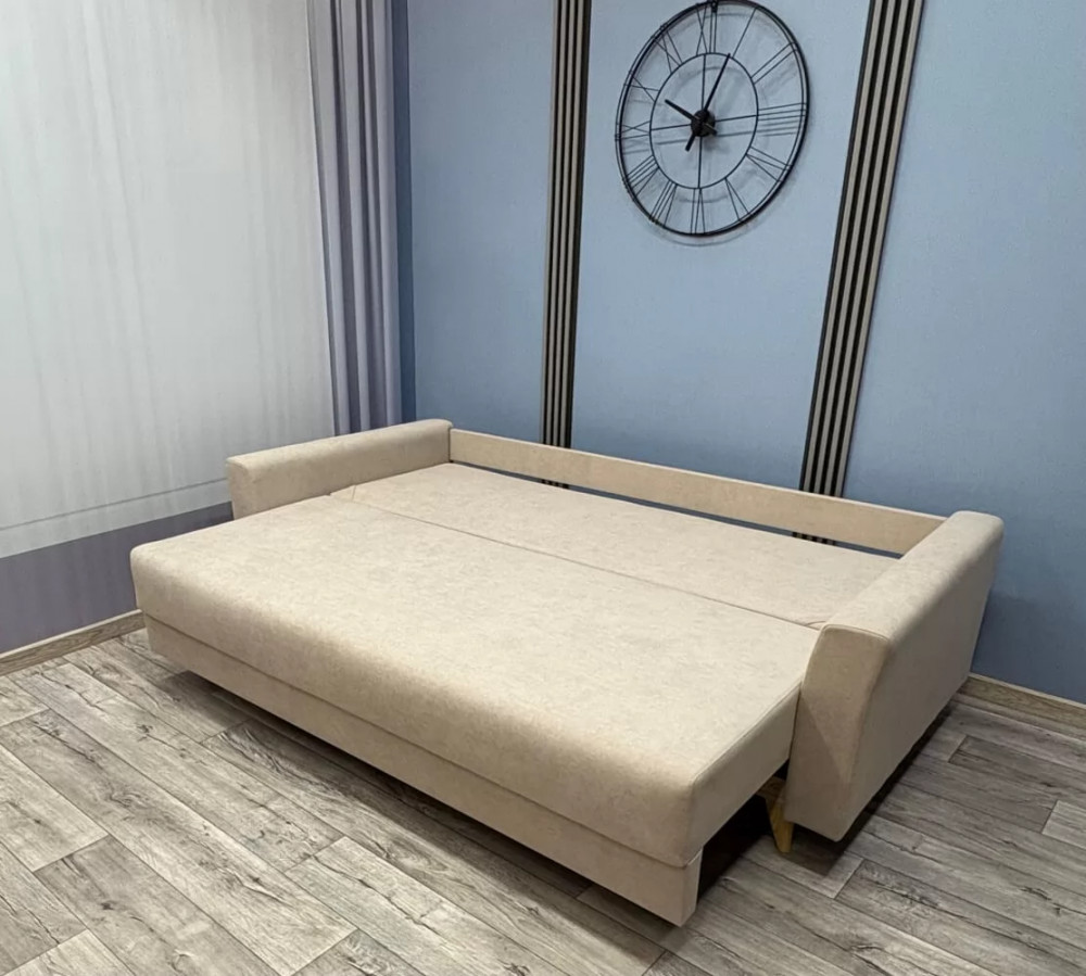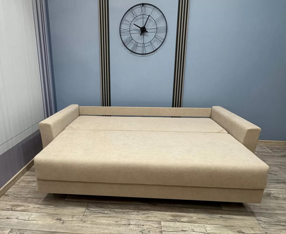 Каркас - древесина хвойных пород Способ раскладки –«Евро-книжка» Механизм - "Пантограф с ногой" Подушки - гипоаллергенный "Микс" Спинка, сиденье - независимый пружинный блок 120 мм, ППУ высокой плотности 30 мм Бельевой короб - ЛДСП Обивка - под заказ Опоры - пластиковые элементы Габариты - 2360*1090*900мм Спальное место - 2000*1530мм Объем - 1,5 м3