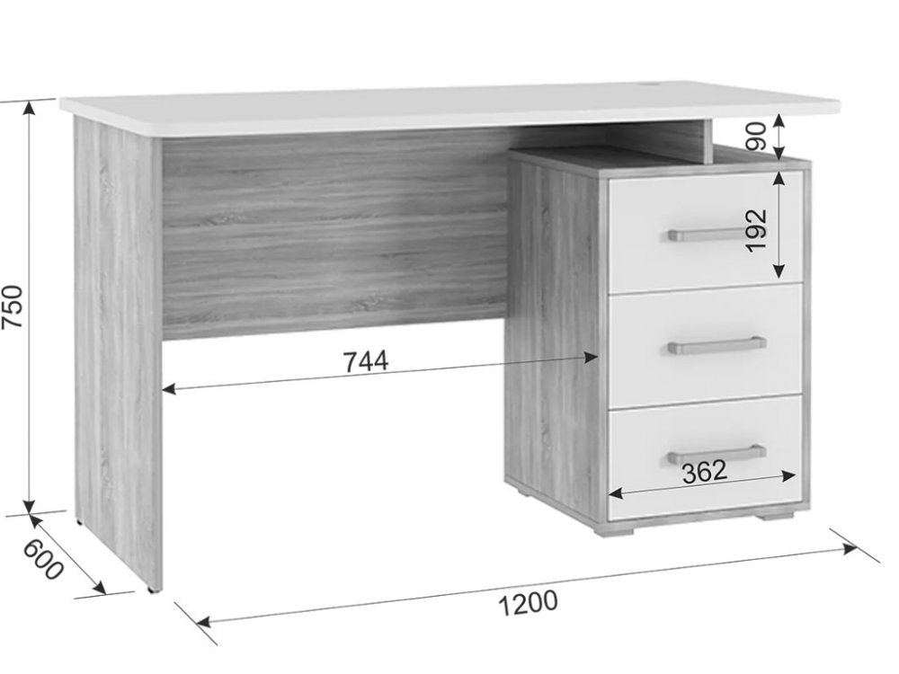 Состоит из: тумба с 3-мя выдвижными ящиками.