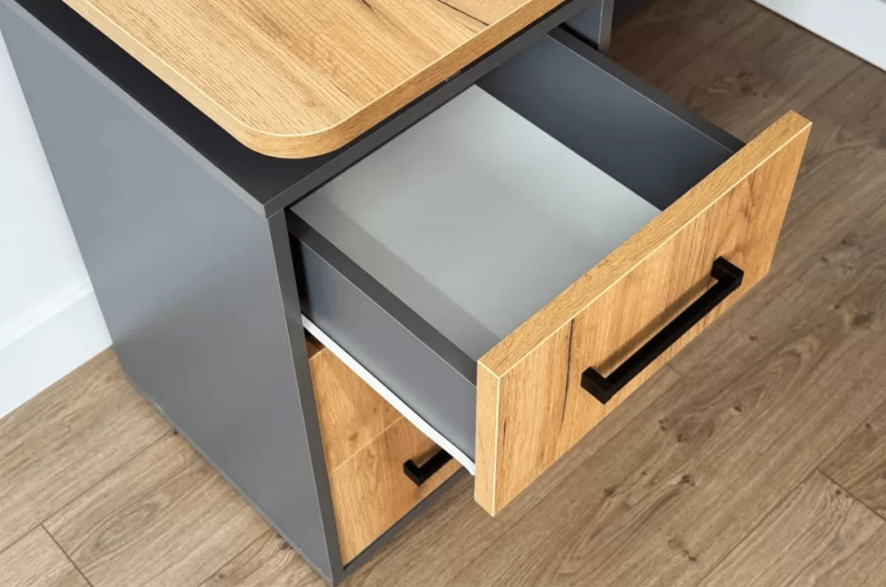 Компьютерный стол Лайт-2: идеальное сочетание функциональности и дизайна, которое превратит даже небольшое пространство в уютное и продуктивное рабочее место. Модель сочетает в себе стильные фактуры, удобные ящики на роликовых направляющих и практичные ниши для хранения документов и канцелярских принадлежностей.