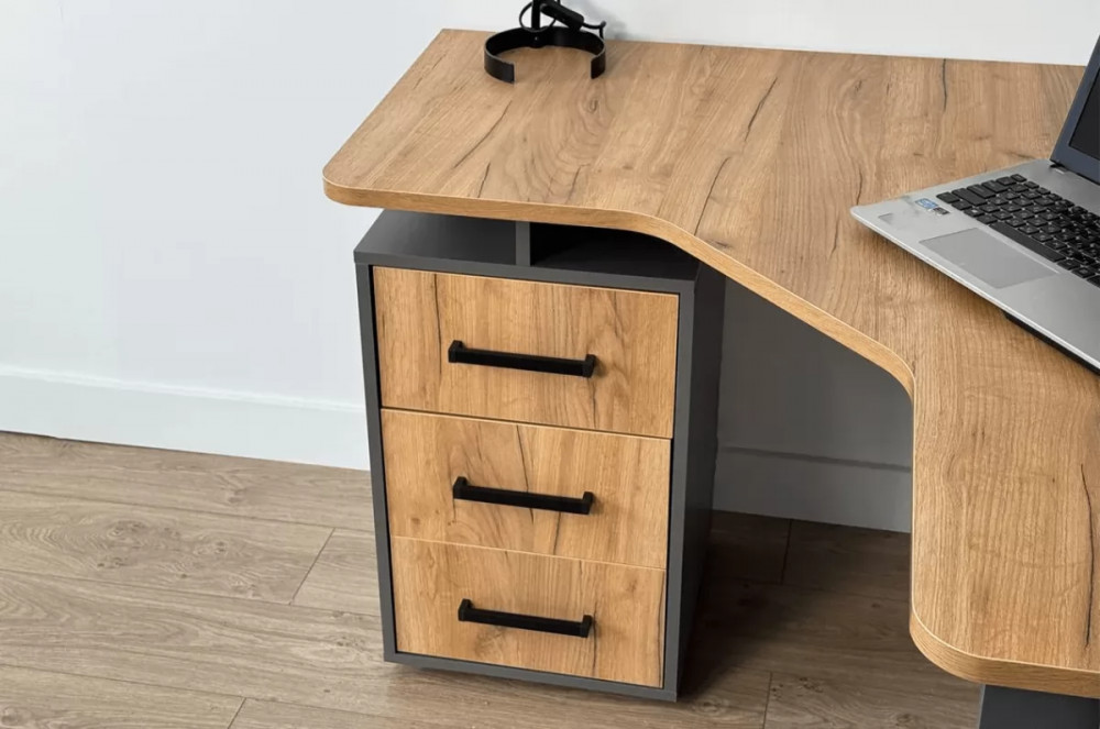 Стол компьютерный 1200 угловой Лайт-2 графит/дуб крафт золотой