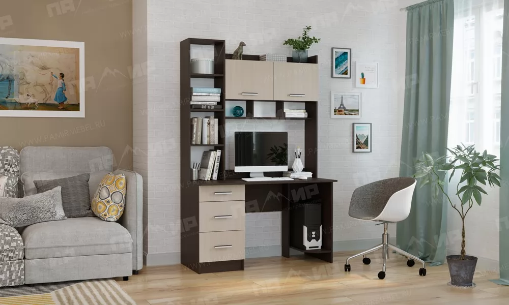 Стол компьютерный "ПКС- 4" (ш1384*г570*в756мм), ЛДСП венге/дуб белфорд (Памир)