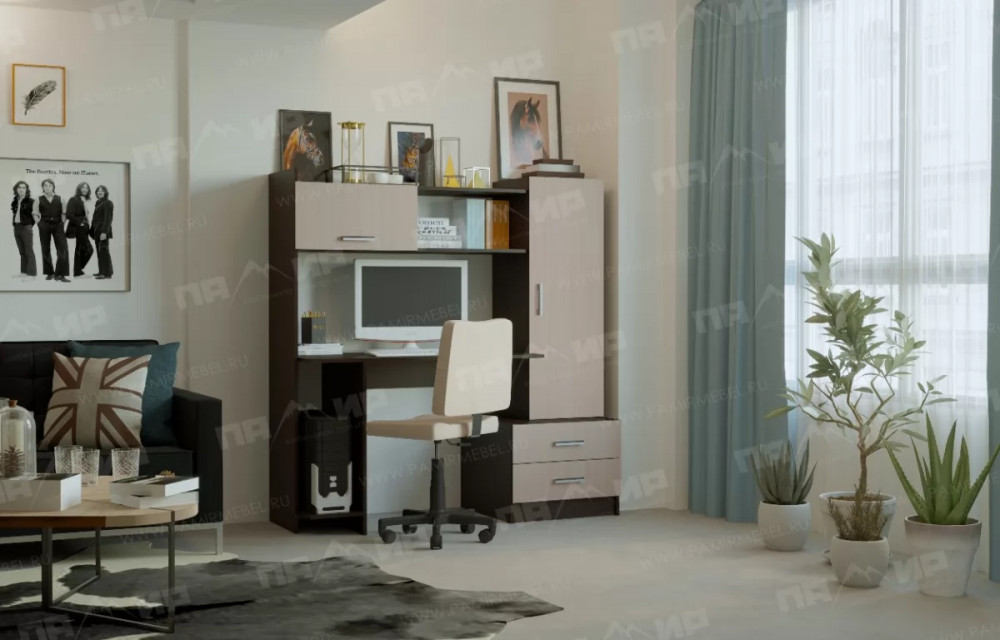 Стол компьютерный "ПКС- 4" (ш1384*г570*в756мм), ЛДСП венге/дуб белфорд (Памир)
