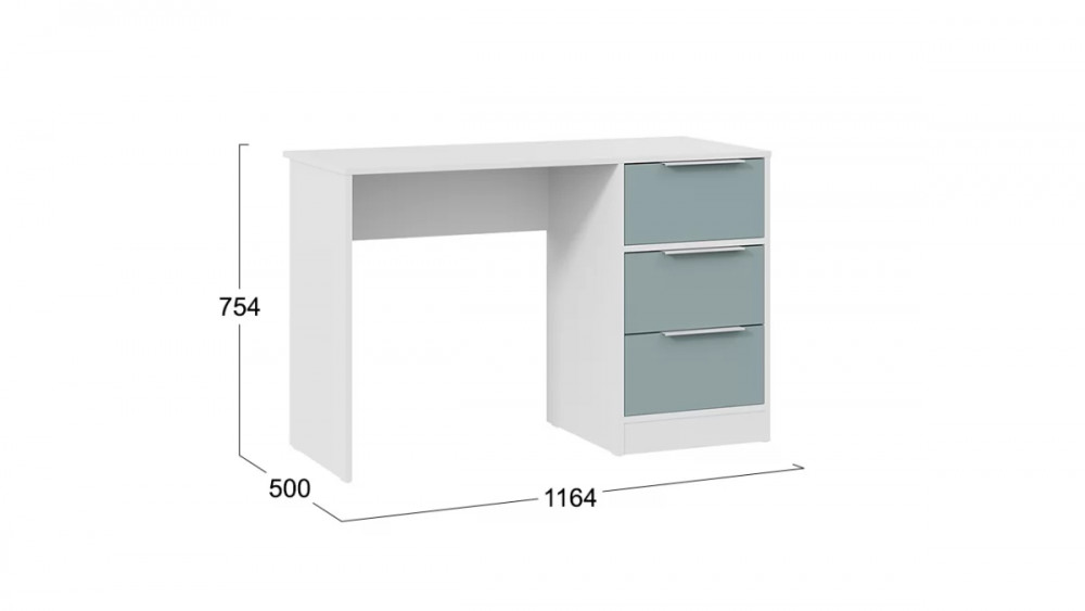Назначение: Мебель для работы и приема пищи Гарантийный срок: 24 месяца Комната использования: Молодежная, Офис Материал кромки каркаса: ПВХ Стиль: Современный Материал кромки фасада: ПВХ Тип: Компьютерный стол Расположение: Напольный Тип направляющих ящиков: Шариковые Наполнение: Ящики Материал каркаса: ЛДСП Материал ручек: Металл Производство: Россия Габаритная ширина: 1 164 Габаритная высота: 754 Форма предмета: Прямоугольный Габаритная глубина: 500 Количество ящиков: 3 Модель: Марли (корпус) Срок службы: 5 лет Материал фасада: ЛДСП Оттенок: Белый, Голубой Цвет: Белый, Серо-голубой Цвет каркаса: Белый (поры дерева) Цвет фасада: Белый (поры дерева), Серо-голубой Оттенок каркаса: Белый Оттенок фасада: Белый, Голубой Тип сборки: Универсальный левый/правый Наличие механизма раскладки: Нет Наличие спального места: Нет