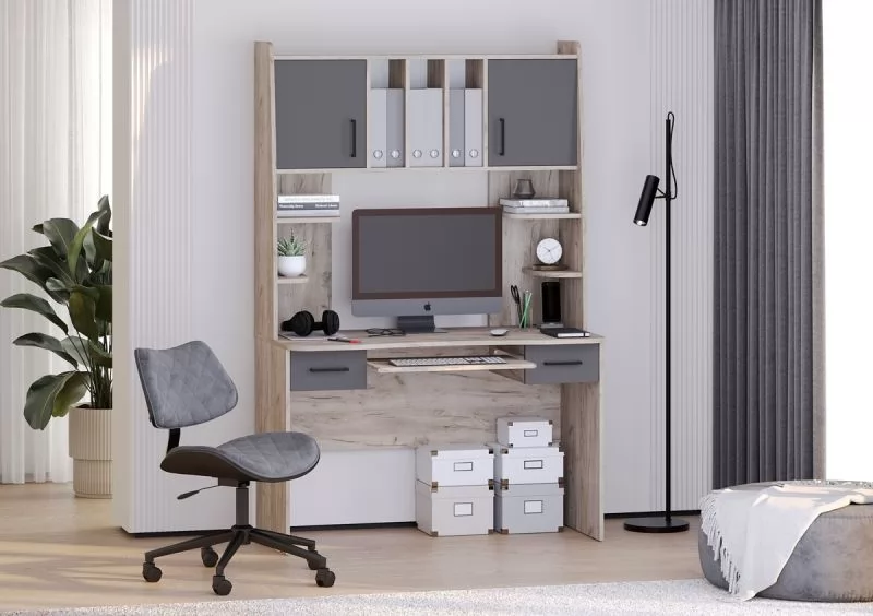 Стол рабочий БЕТА (ш1200*г605*в1835мм), ЛДСП Дуб крафт серый/Графит в Советском