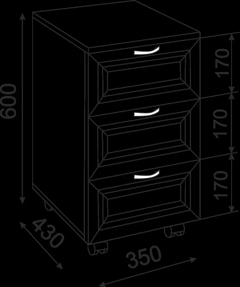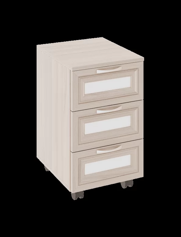 Материалы: Корпус (материал, толщина, текстура): ЛДСП 16 мм поры дерева Фасад (материал, текстура): Рамочный Корпус кромка (материал, толщина): ПВХ 0.45 мм Задняя стенка: ДВПО, Белый Направляющие ящиков (Тип): Шариковые полн.выдвижения 400 мм Лицевая фурнитура: Ручки пластиковые, Матовый хром, 96 мм Опоры (материал, форма, высота,): колесные, 60 мм