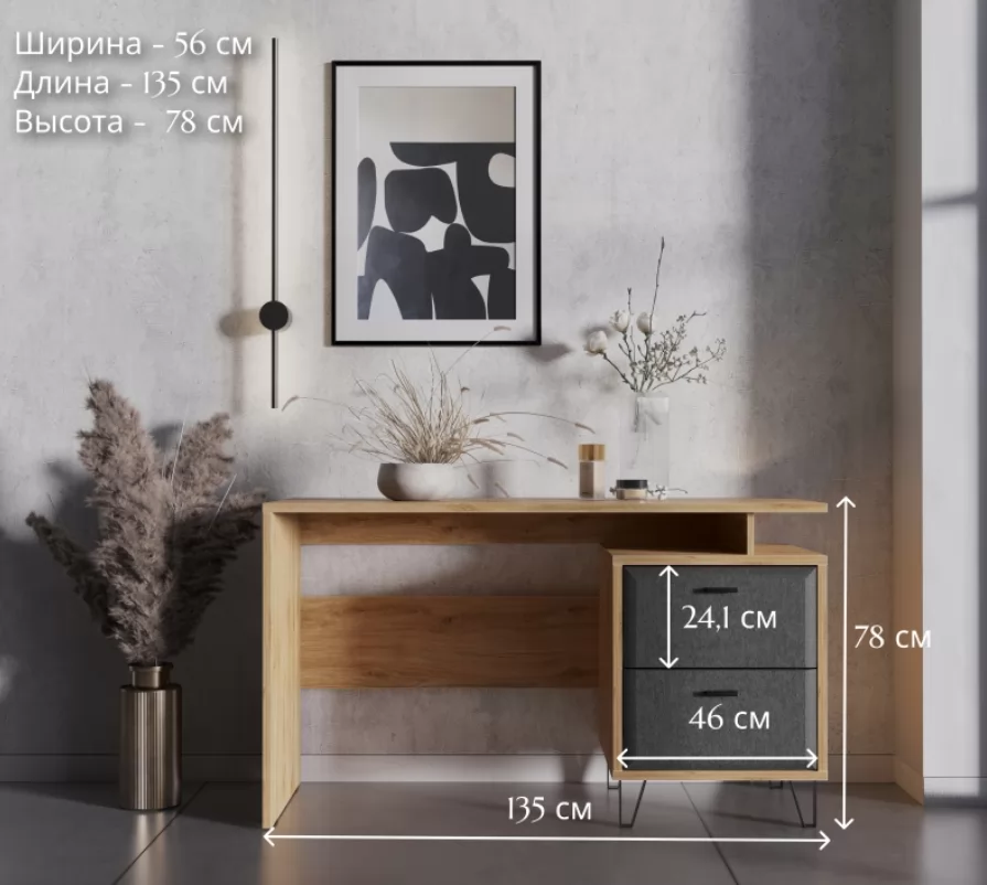 Просторная столешница с легкостью разместит на себе мониторы, клавиатуру, ноутбуки, органайзеры и настольные лампы. Два выдвижных ящика помогут организовать школьную и рабочую канцелярию, книги, журналы и другие важные элементы.