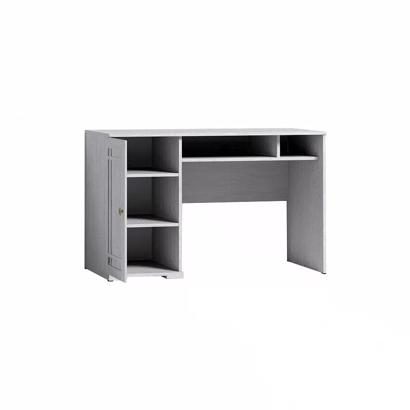 Классический письменный стол можно поставить в гостиную или кабинет. Широкая столешница на 587 мм позволит удобно разместиться с ноутбуком и бумагами. После работы их можно убрать на полку под столешницей. В боковой тумбе две полки, регулируемые по высоте. Их можно не устанавливать и в свободную нишу поставить компьютерный процессор. Высота стола - 765 мм - обеспечит комфортную работу человеку высокого роста.
