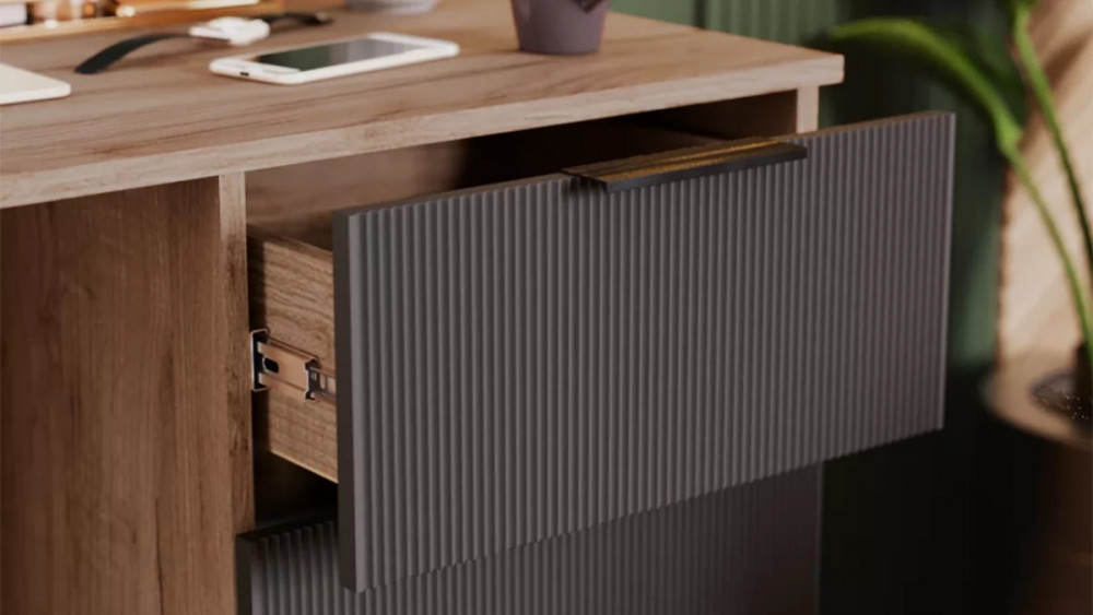 Стол письменный «Графит» Дуб Крафт Табачный, Холст Вулкан в Советском