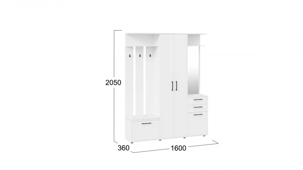 Назначение: Мебель для хранения Зеркало: Да Гарантийный срок: 24 месяца Комната использования: Прихожая Материал кромки каркаса: ПВХ Стиль: Современный Тип: Гарнитур в прихожую Расположение: Напольный Тип направляющих ящиков: Роликовые Материал ножек/опоры: Пластик Наполнение: Полка ЛДСП, штанга выдвижная, ящики Материал каркаса: ЛДСП Материал ручек: Пластик Производство: Россия Количество посадочных мест: 1 Габаритная ширина: 1 600 Габаритная высота: 2 050 Форма предмета: Прямоугольный Габаритная глубина: 360 Модель: Витра тип 2 Срок службы: 5 лет Материал фасада: ЛДСП Оттенок: Белый Цвет: Белый Ясень Цвет каркаса: Белый Ясень Цвет фасада: Белый Ясень Оттенок каркаса: Белый Оттенок фасада: Белый Тип сборки: Универсальный левый/правый Заглушина для ящика кровати в комплекте: Нет Наличие механизма раскладки: Нет Наличие спального места: Нет