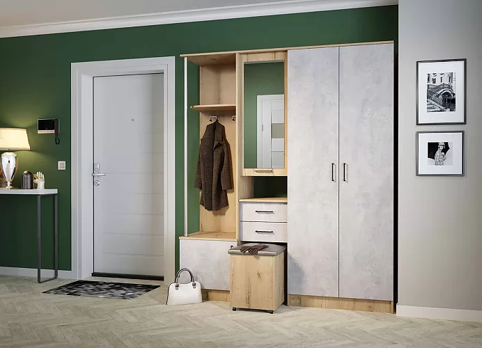 Прихожая "Дуся 1.7" УНИ, (ш1700*г480*в2015мм), ЛДСП дуб бунратти/цемент G41182 в Советском