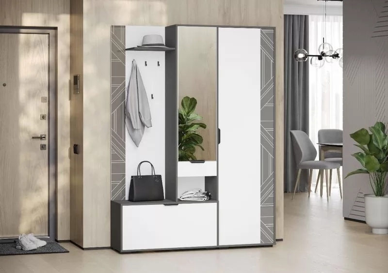 Прихожая ЛЕО УНИ (ш1468*г365*в2024мм), ЛДСП Графит/Белый + ФП в Советском