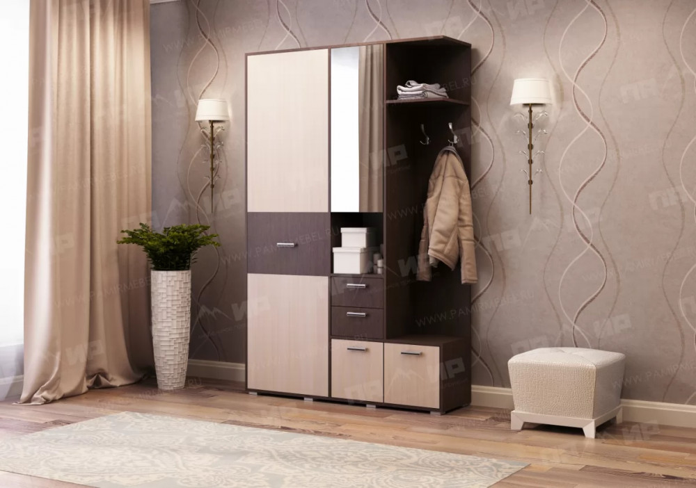 Прихожая "ПВ-7", (ш1340*г350*в2052мм), ЛДСП венге/дуб белфорт в Советском