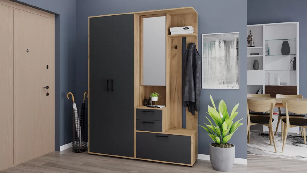 Прихожая «Витра» №4 Дуб Крафт золотой, Антрацит в Советском