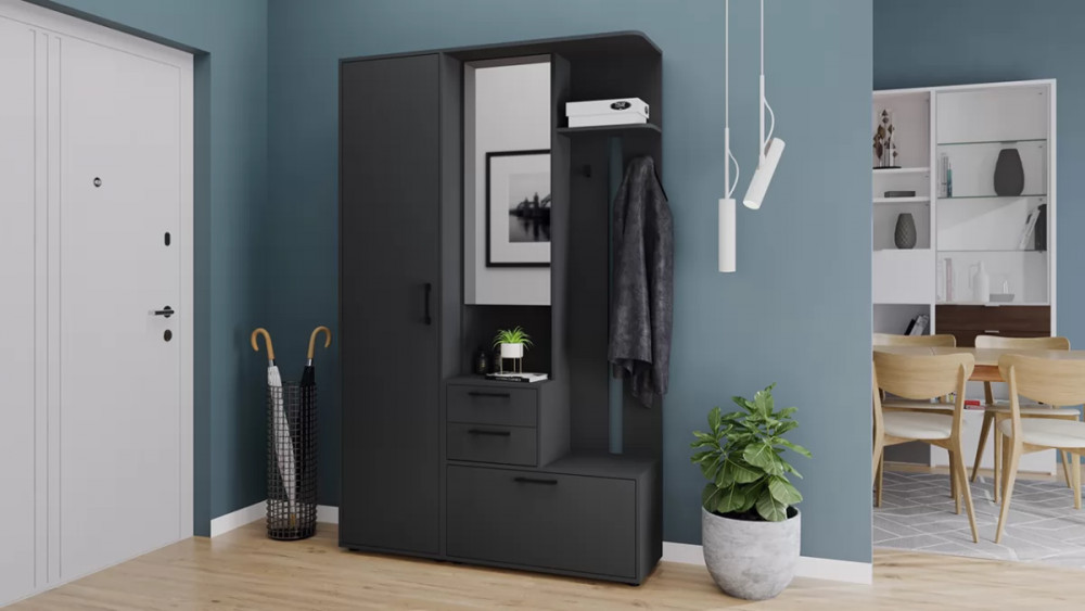 Наполнение: Полка ЛДСП, штанга выдвижная, ящики