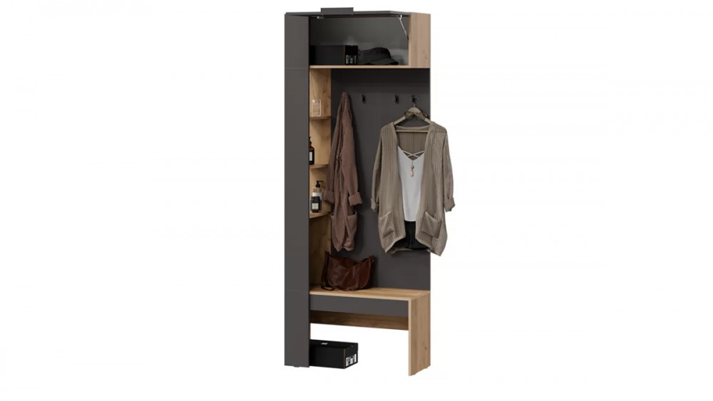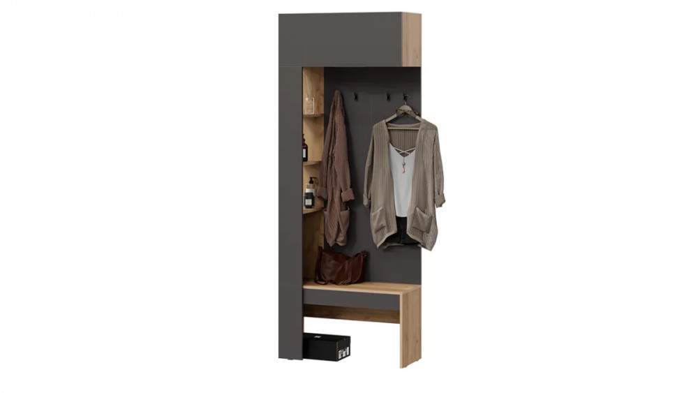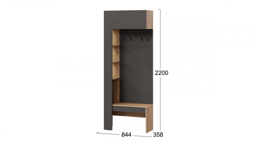 Назначение: Мебель для хранения Количество дверей: 2 Зеркало: Нет Гарантийный срок: 24 месяца Комната использования: Прихожая Материал кромки каркаса: ПВХ Стиль: Современный Тип: Секция внутренняя Расположение: Напольный Материал ножек/опоры: Металл Наполнение: Полки ЛДСП, Крючки Материал каркаса: ЛДСП Производство: Россия Габаритная ширина: 844 Габаритная высота: 2 200 Форма предмета: Прямоугольный Габаритная глубина: 358 Количество ящиков: 0 Количество полок ЛДСП: 3 Модель: Асти (прихожая) Срок службы: 5 лет Материал фасада: ЛДСП Оттенок: Коричневый, Темно-серый Цвет: Дуб крафт золотой/Антрацит Цвет каркаса: Коричневый Цвет фасада: темно-серый Оттенок каркаса: Коричневый Оттенок фасада: Темно-серый Тип сборки: Не универсальный Наличие механизма раскладки: Нет Наличие спального места: Нет