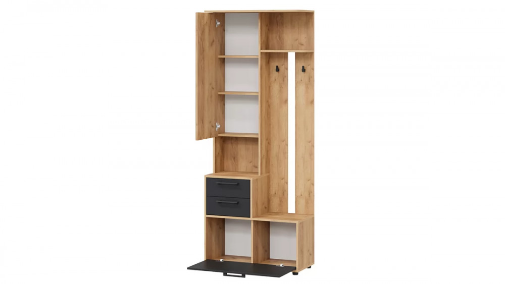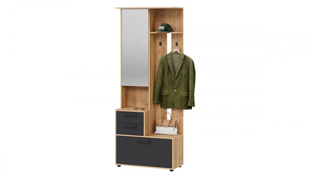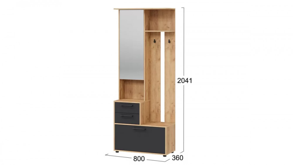 Назначение: Мебель для хранения Количество дверей: 2 Зеркало: Да Гарантийный срок: 24 месяца Комната использования: Прихожая Материал кромки каркаса: ПВХ Стиль: Современный Тип: Вешалка напольная, Секция с зеркалом Расположение: Напольный Тип направляющих ящиков: Роликовые Материал ножек/опоры: Пластик Наполнение: Обувница, Полки ЛДСП, Крючки, Ящики Материал каркаса: ЛДСП Направление открытия двери: Определяется при сборке, Вниз Материал ручек: Пластик Дополнительная информация: Мягкий элемент в комплект не входит Производство: Россия Количество посадочных мест: 1 Габаритная ширина: 800 Габаритная высота: 2 041 Форма предмета: Прямоугольный Габаритная глубина: 360 Количество ящиков: 2 Количество полок ЛДСП: 1 Модель: Витра тип 1 Срок службы: 5 лет Материал фасада: ЛДСП Оттенок: Коричневый, Темно-серый Цвет: Дуб Крафт золотой, Антрацит Цвет каркаса: Коричневый Цвет фасада: Темно-серый Оттенок каркаса: Коричневый Оттенок фасада: Темно-серый Тип сборки: Универсальный левый/правый Наличие механизма раскладки: Нет Наличие спального места: Нет