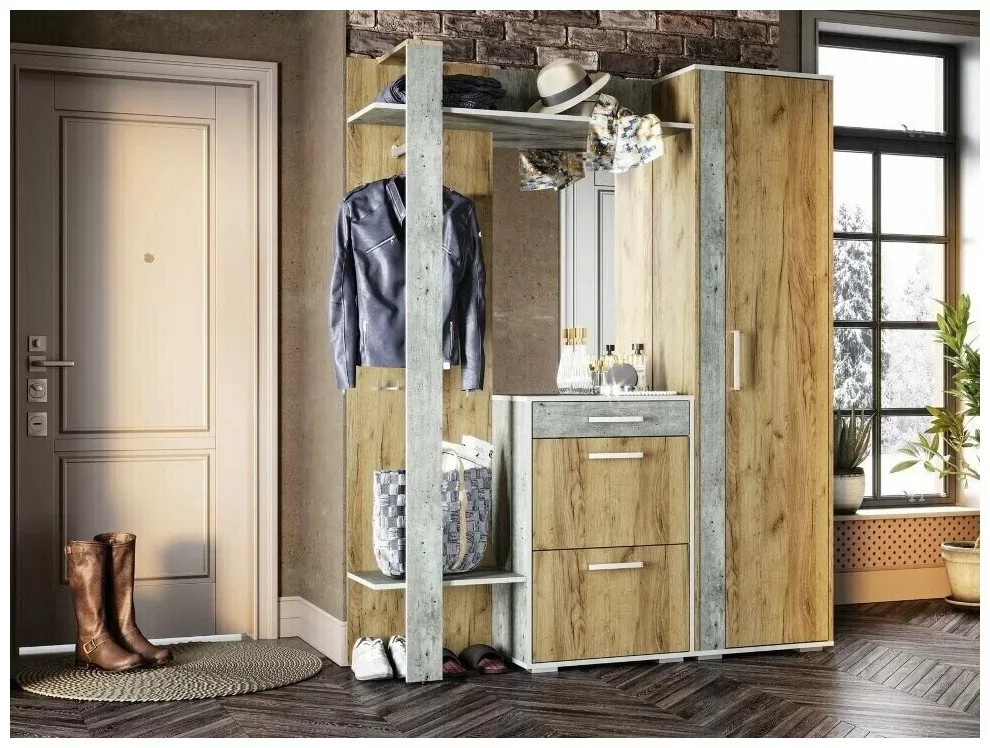 Модуль данной прихожей универсален, собирается как на правую, так и на левую сторону.