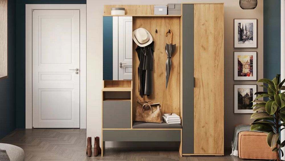 Зеркало: Да Гарантийный срок: 24 месяца Комната использования: Прихожая Стиль: Современный Тип: Модульная прихожая Материал каркаса: ЛДСП Материал ручек: Пластик Производство: Россия Модель: Эвита Цвет: Дуб Крафт золотой, Графит Серый Наличие механизма раскладки: Нет Наличие спального места: Нет