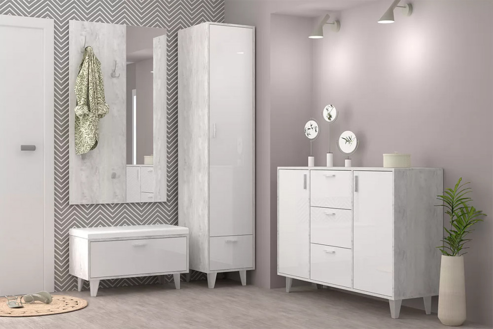 Цвет:бетон светлый/белый глянец