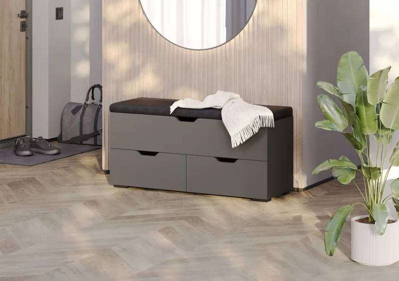 Диван ФЛИНТ (тумба д/обуви) (ш1000*г360*в490мм), ЛДСП Графит - кожзам черный в Советском