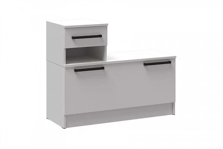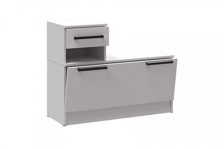 Фурнитура: опоры - подпятник пластиковый, черный. Ручки пластиковые, черные. Тумбы можно доукомплектовать мягкими сиденьями выполнеными из экокожи цвета Микл (продается отдельно).