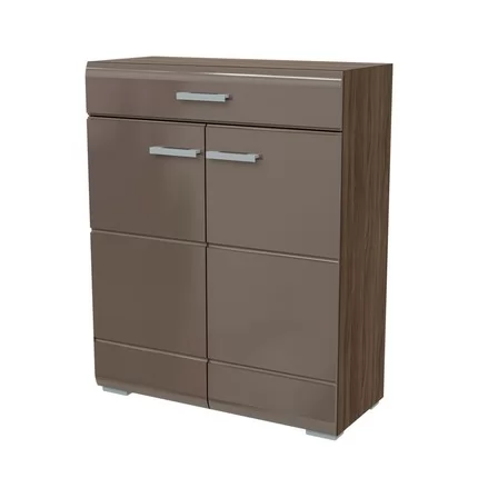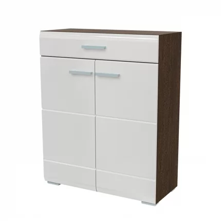 Комод оснащён тремя закрытыми полками за двумя створками и одним вместительным выдвижным ящиком.