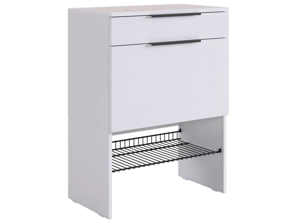 Изготовленная из прочного ЛДСП толщиной 16 мм, обувница обеспечивает надежность и долговечность. Выкатной ящик на шариковых направляющих позволяет легко и плавно открывать и закрывать его, предоставляя дополнительное место для хранения мелочей.