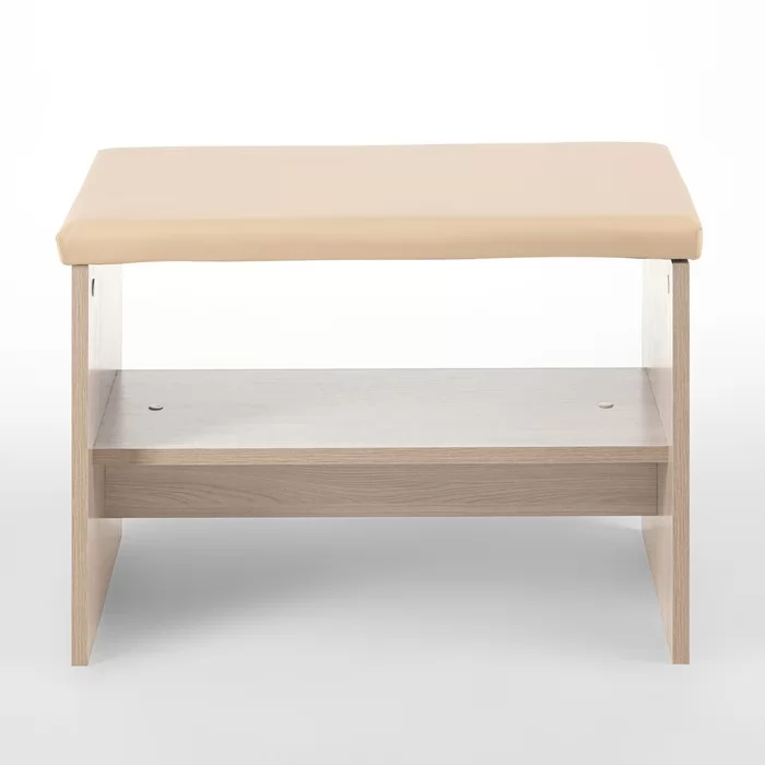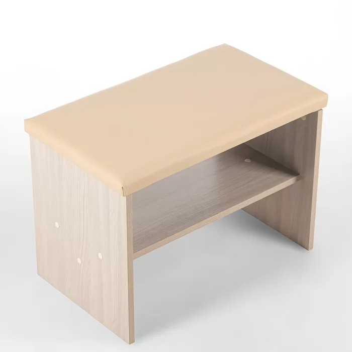 Выполнена в 3-х комбинациях: Ясень шимо светлый/бежевый кожзам, Белый/серый кожзам, Дуб сонома/белый кожзам