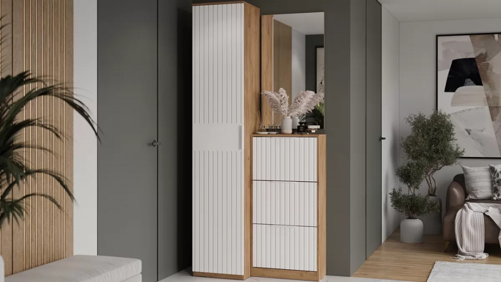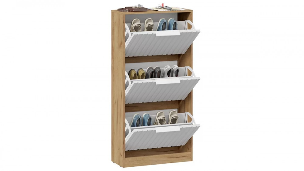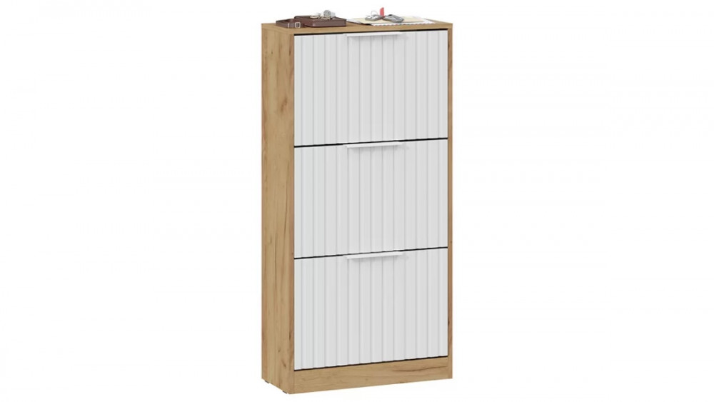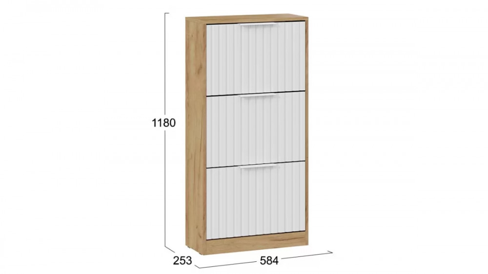 Назначение: Мебель для хранения Количество дверей: 2 Зеркало: Нет Гарантийный срок: 24 месяца Комната использования: Прихожая Материал кромки каркаса: ПВХ Стиль: Современный Тип: Тумба для обуви Расположение: Напольный Тип направляющих ящиков: Шариковые Наполнение: Ящик, Обувница Материал каркаса: ЛДСП Направление открытия двери: Вниз Материал ручек: Металл Дополнительная информация: Материал механизма обувницы (боковых стенок ящиков) - пластик. Производство: Россия Габаритная ширина: 584 Габаритная высота: 1 180 Форма предмета: Прямоугольный Габаритная глубина: 253 Количество ящиков: 3 Модель: Хилтон (прихожая) Срок службы: 5 лет Материал фасада: МДФ, пленка ПВХ Оттенок: Коричневый, Белый Цвет: Дуб Крафт золотой, Белый матовый Цвет каркаса: Дуб Крафт золотой Цвет фасада: Белый матовый Оттенок каркаса: Коричневый Оттенок фасада: Белый Наличие механизма раскладки: Нет Наличие спального места: Нет