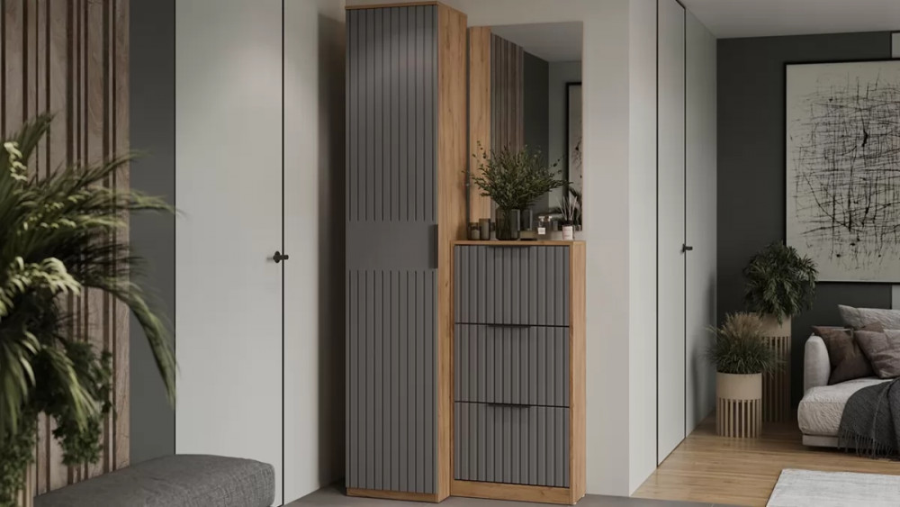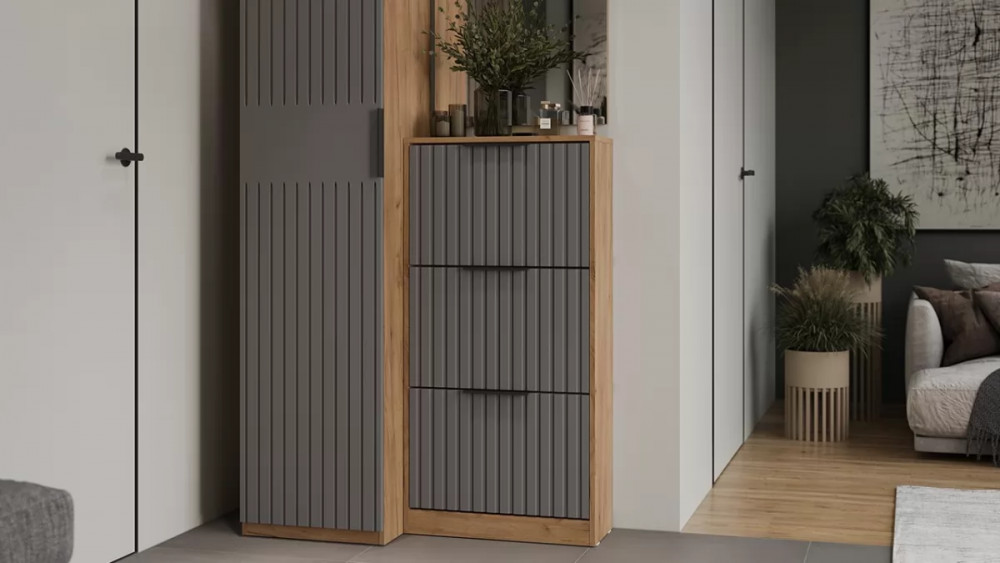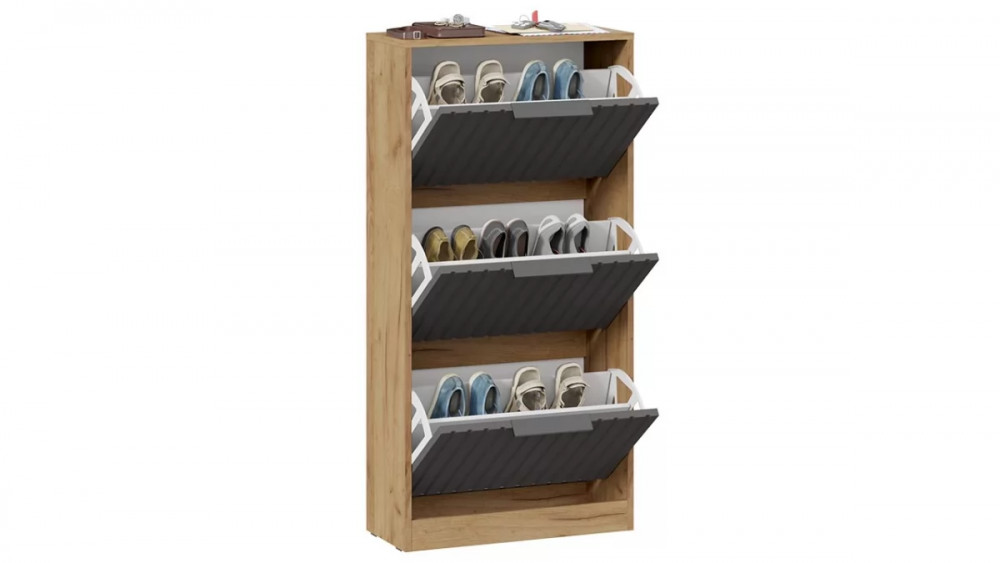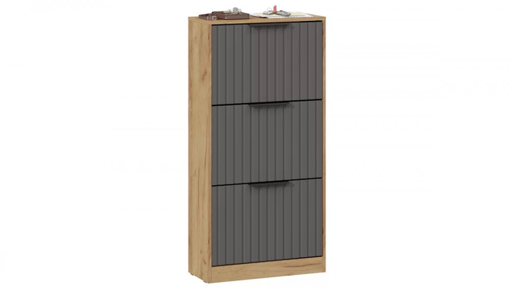 Назначение: Мебель для хранения Количество дверей: 2 Зеркало: Нет Гарантийный срок: 24 месяца Комната использования: Прихожая Материал кромки каркаса: ПВХ Стиль: Современный Тип: Тумба для обуви Расположение: Напольный Тип направляющих ящиков: Шариковые Наполнение: Ящик, Обувница Материал каркаса: ЛДСП Направление открытия двери: Вниз Материал ручек: Металл Дополнительная информация: Материал механизма обувницы (боковых стенок ящиков) - пластик. Производство: Россия Габаритная ширина: 584 Габаритная высота: 1 180 Форма предмета: Прямоугольный Габаритная глубина: 253 Количество ящиков: 3 Модель: Хилтон (прихожая) Срок службы: 5 лет Материал фасада: МДФ, пленка ПВХ Оттенок: Коричневый, Серый Цвет: Дуб Крафт золотой, Графит матовый Цвет каркаса: Дуб Крафт золотой Цвет фасада: Графит матовый Оттенок каркаса: Коричневый Оттенок фасада: Серый Наличие механизма раскладки: Нет Наличие спального места: Нет