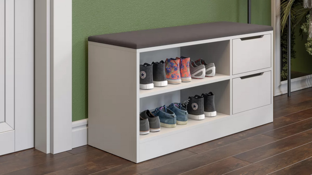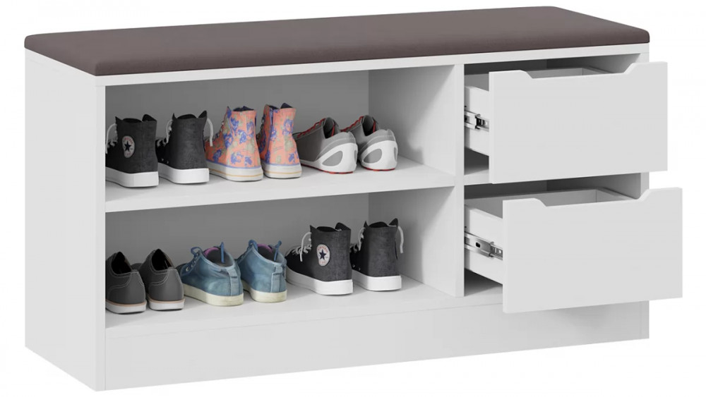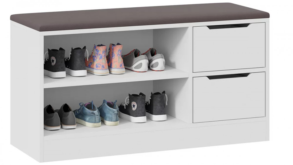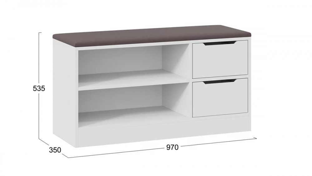 Назначение: Мебель для хранения Зеркало: Нет Гарантийный срок: 24 месяца Комната использования: Прихожая Материал кромки каркаса: ПВХ Стиль: Современный Тип: Тумба для обуви Расположение: Напольный Тип направляющих ящиков: Шариковые Наполнение: Обувница Материал каркаса: ЛДСП Производство: Россия Габаритная ширина: 970 Габаритная высота: 535 Форма предмета: Прямоугольный Габаритная глубина: 350 Количество ящиков: 2 Срок службы: 5 лет Материал фасада: ЛДСП Оттенок: Белый, Серый Цвет: Белый Ясень, Велюр Серый Обивочный материал: Велюр Цвет каркаса: Белый Ясень Цвет фасада: Белый Ясень Оттенок каркаса: Белый Оттенок фасада: Белый Тип сборки: Не универсальный Цвет обивки: Серый Наличие механизма раскладки: Нет Наличие спального места: Нет Коллекция обивочного материала: Veluta lux 19