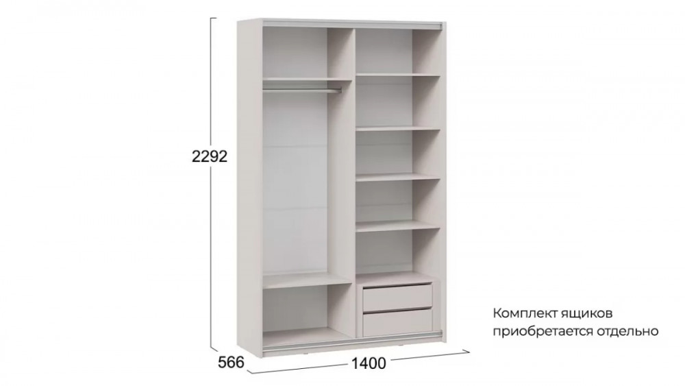 Количество дверей: 2 Зеркало: Да Гарантийный срок: 24 месяца Комната использования: Спальня, Прихожая, Гостиная Стиль: Современный Тип: Шкаф-купе Материал каркаса: ЛДСП Направление открытия двери: Влево/вправо Дополнительная информация: Фурнитура: алюминиевые ручки дверей окрашены порошковой краской(белая/черная), серебряная ручка из анодированного алюминия, алюминиевый ходовой профиль, полкодержатель флиппер Тип фасада: Зеркало/Зеркало Габаритная ширина: 1 400 Габаритная высота: 2 292 Система раздвижения дверей: Hettich Top Line M Габаритная глубина: 588 Модель: Оскар Срок службы: 5 лет Материал фасада: ЛДСП, зеркало Цвет: Ручка белая, Кашемир Цвет каркаса: Кашемир Тип сборки: Не универсальный Наличие механизма раскладки: Нет Наличие спального места: Нет Цвет ручки: Белый