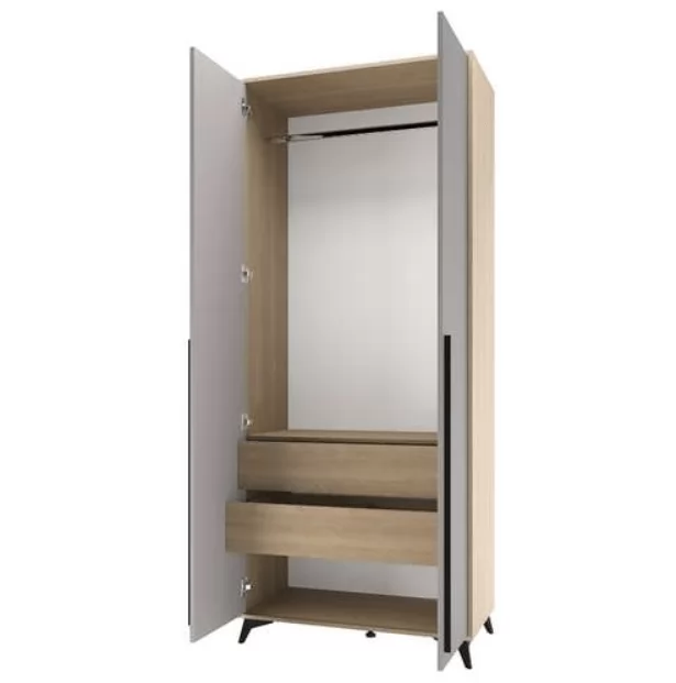 ХЕЛЕН ШК01 Шкаф 2х ств., 2ящ., (ш802*г460*в2100мм), Дуб Крафт Золотой/Белый