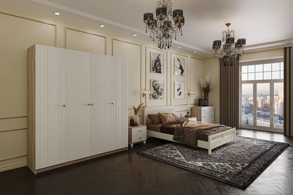 Длина - 540 мм Ширина - 1499 мм Высота - 2204 мм Срок службы - 7 лет Гарантийный срок - 18 месяцев Монтаж - Требует сборки Фрезеровка фасада - Да Материал фасада - МДФ Материал корпуса - ЛДСП Количество дверей - 4 шт Фурнитура - Шариковые направляющие полного выдвижения, Штанга для одежды Коллекция - Спальня «Ланзетти» (жемчуг) Цвет корпуса - Дуб Торонто Цвет фасада - Жемчуг