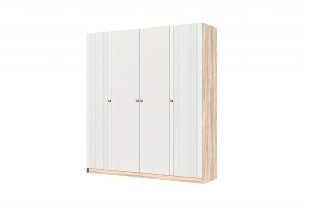 Длина - 540 мм Ширина - 1998 мм Высота - 2204 мм Срок службы - 7 лет Гарантийный срок - 18 месяцев Монтаж - Требует сборки Фрезеровка фасада - Да Материал фасада - МДФ Материал корпуса - ЛДСП Количество дверей - 4 шт Фурнитура - Шариковые направляющие полного выдвижения, Штанга для одежды Коллекция - Спальня «Ланзетти» (жемчуг) Цвет корпуса - Дуб Торонто Цвет фасада - Жемчуг