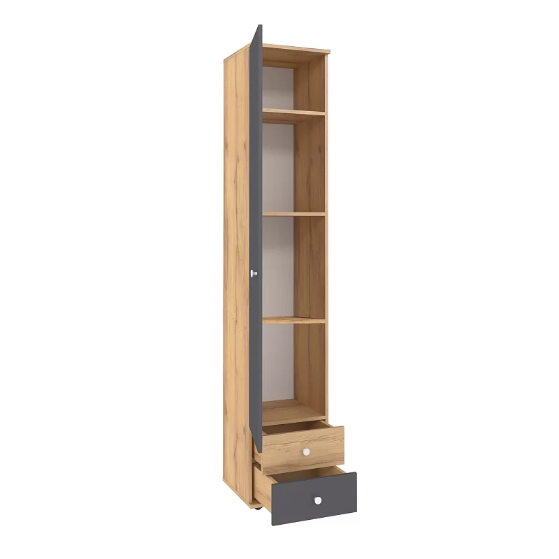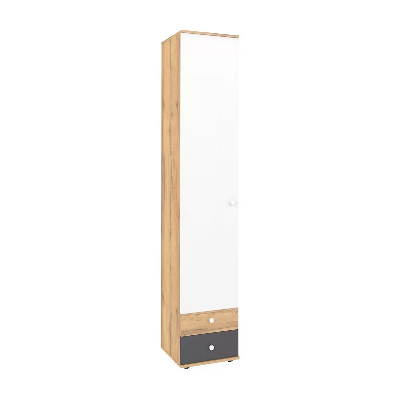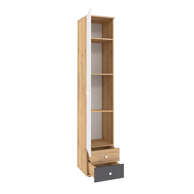 Ширина (мм): 400 Высота (мм): 2113 Глубина (мм): 400 Материал: ЛДСП Цвет: Дуб Золотистый/Белый, Дуб золотистый/Графит Коллекция: Лойс