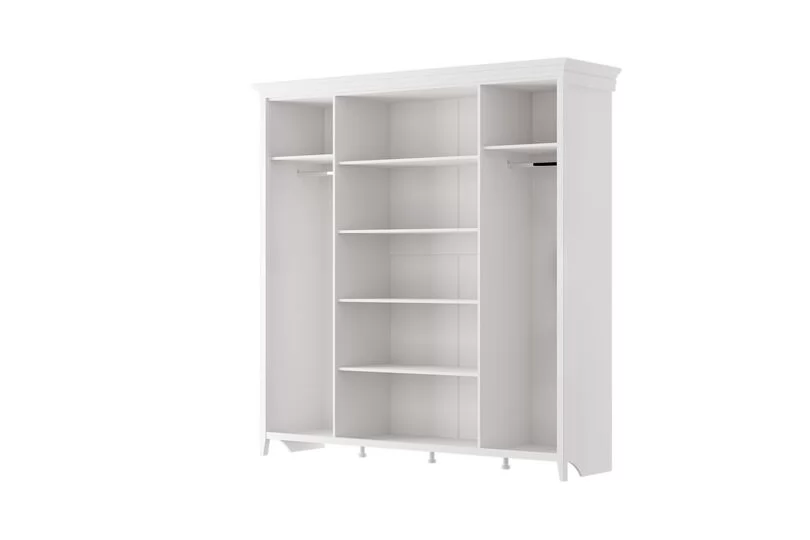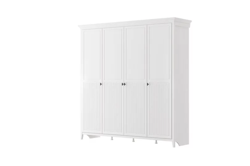 Глубина - 589 мм Ширина - 2160 мм Высота - 2200 мм Срок службы - 7 лет Гарантийный срок - 18 месяцев Монтаж - Требует сборки Модульность изделия - Да Фрезеровка фасада - Да Материал фасада - МДФ Материал корпуса - ЛДСП Материал полок - ЛДСП Материал опоры - Массив Вариант отделки фасада - Лакокрасочное покрытие Количество дверей - 4 шт Фурнитура - Штанга для одежды, Шариковые направляющие полного выдвижения, Петли с доводчиком Цвет корпуса - Белый Цвет фасада - Лак белый