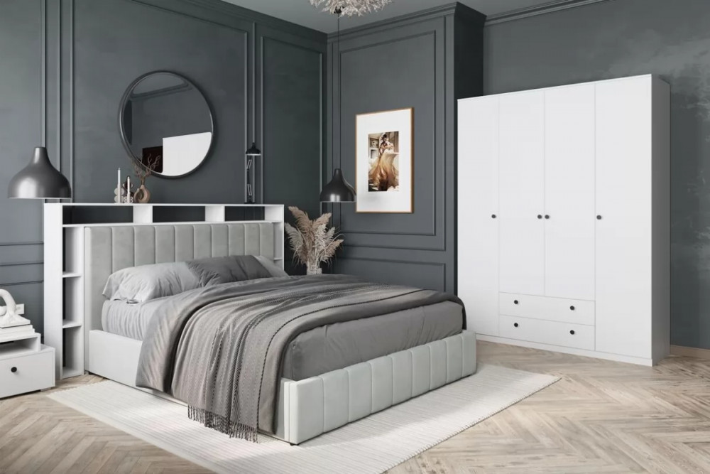 Глубина - 519 мм Ширина - 1640 мм Высота - 2150 мм Срок службы - 7 лет Гарантийный срок - 18 месяцев Монтаж - Требует сборки Количество жестких полок - 4 шт Материал фасада - ЛДСП Материал корпуса - ЛДСП Материал полок - ЛДСП Количество дверей - 4 шт Фурнитура - Штанга для одежды, Шариковые направляющие полного выдвижения Коллекция - Спальня «Оскар» Цвет корпуса - Белый Цвет фасада - Белый Количество выдвижных ящиков - 2 шт