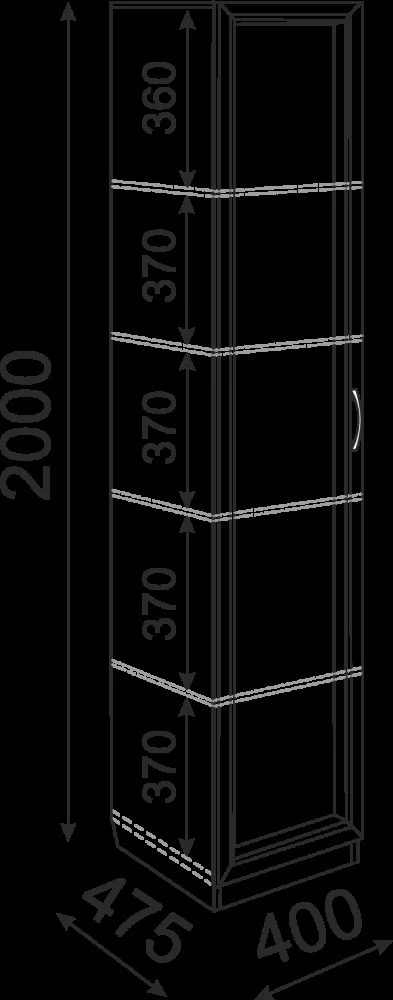Размеры: Габарит ширина: 400 мм Габарит глубина: 475 мм Габарит высота: 2000 мм Расстояние между полками, мм: 360-370мм