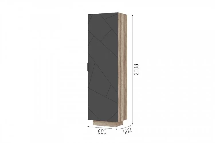 Высота, мм-2008Ширина, мм-600Глубина, мм-402Вес, кг-47.4Расположение-УниверсальноеМатериал корпуса-ЛДСПМатериал фасада-МДФЦвет корпуса-КоричневыйЦвет фасада-Темно-серыйЦвет корпуса изготовителя-Дуб каньонЦвет фасада изготовителя-Софт графитВид установки-НапольныйКоличество дверей-1Полки-ЕстьШтанга-Выдвижная