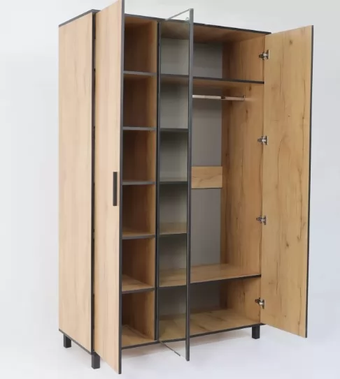 Ширина (мм): 1300 Высота (мм): 2100 Глубина (мм): 550 Цвет: Дуб крафт золотой/Черный Материал: ЛДСП/Зеркало Вес, кг: 119 Объем, м3: 0.2 Корпус — ЛДСП 16 мм Кромка ПВХ 0.4 мм Кромка ПВХ 2 мм Зеркало с фацетом Ручки — черный пластик Дверцы с доводчиком Опоры — черный металл (ФМС) Размер зеркала: 1950х410 мм Возможно исполнение с разными типами опор