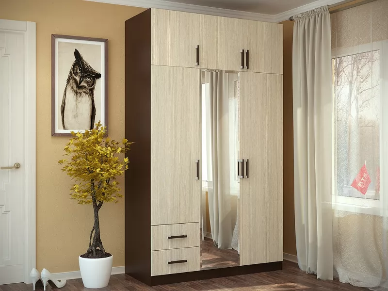 Очень вместительная модель трехстворчатого шкафа Венге с ящиками будет прекрасно смотреться в вашей спальне.